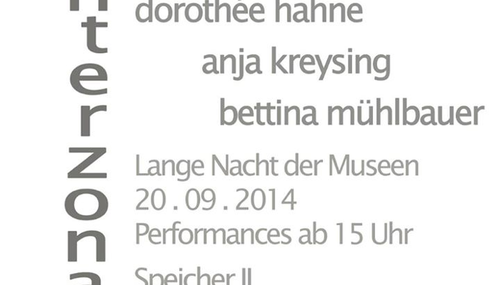Am Samstag d. 20.9. ab 15 Uhr in Münster im Rahmen der "Langen Nacht der Museen" - Interzonal, das Audio- und VideoWorklab im Speicher II mit Dorothée Hahne, Anja Kreysing und Bettina Mühlbauer als Gäste von Tassilo Sturm.